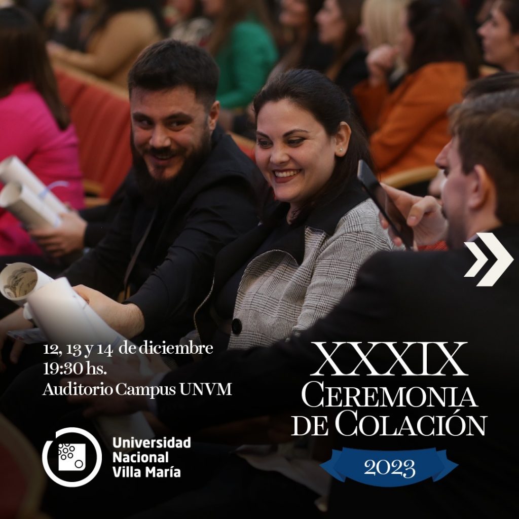Se llevará a cabo la XXXIX Ceremonia de Colación de Grado de la Universidad Nacional de Villa María. El jueves 14 de diciembre, a las 19:30 horas en el Auditorio del Campus de la UNVM, se realizará la ceremonia del Instituto de Ciencias Sociales.