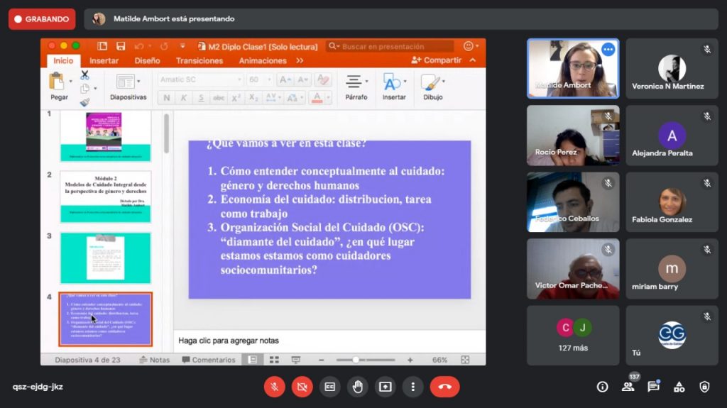 El módulo Modelos de cuidado integral desde la perspectiva de género y derechos, estuvo a cargo de la docente Cecilia Ambort.