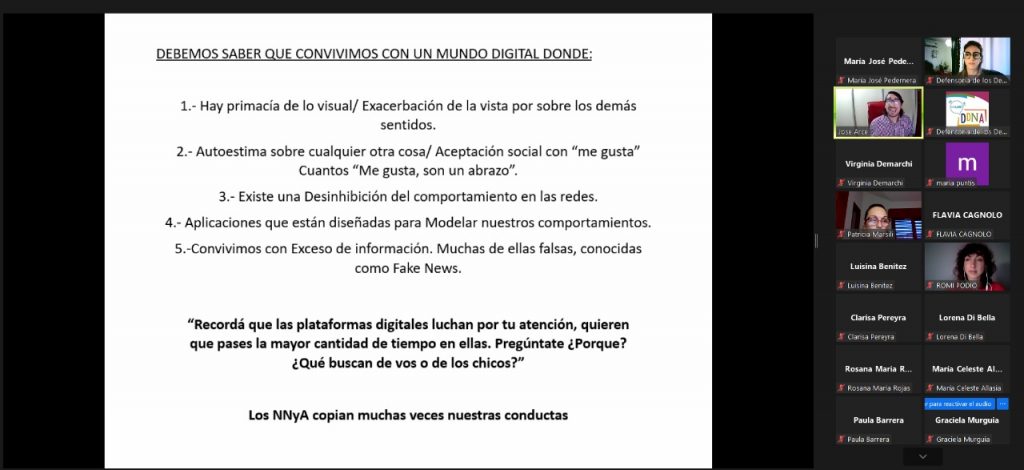 El día viernes 20 de agosto, se llevó a cabo el octavo encuentro del Diplomado en Niñeces y Adolescencias en el Mundo Digital:  Prevención, Protección y Acción, implementado desde la Escuela de Gobierno del Instituto y la Defensoría de las Niñas/os y Adolescentes.