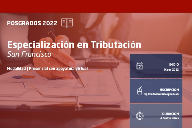 La Universidad Nacional de Villa María, a través de su Instituto Académico Pedagógico de Ciencias Sociales, abre las pre inscripciones para el cursado a partir del Ciclo 2022, de la Especialización en Tributación.