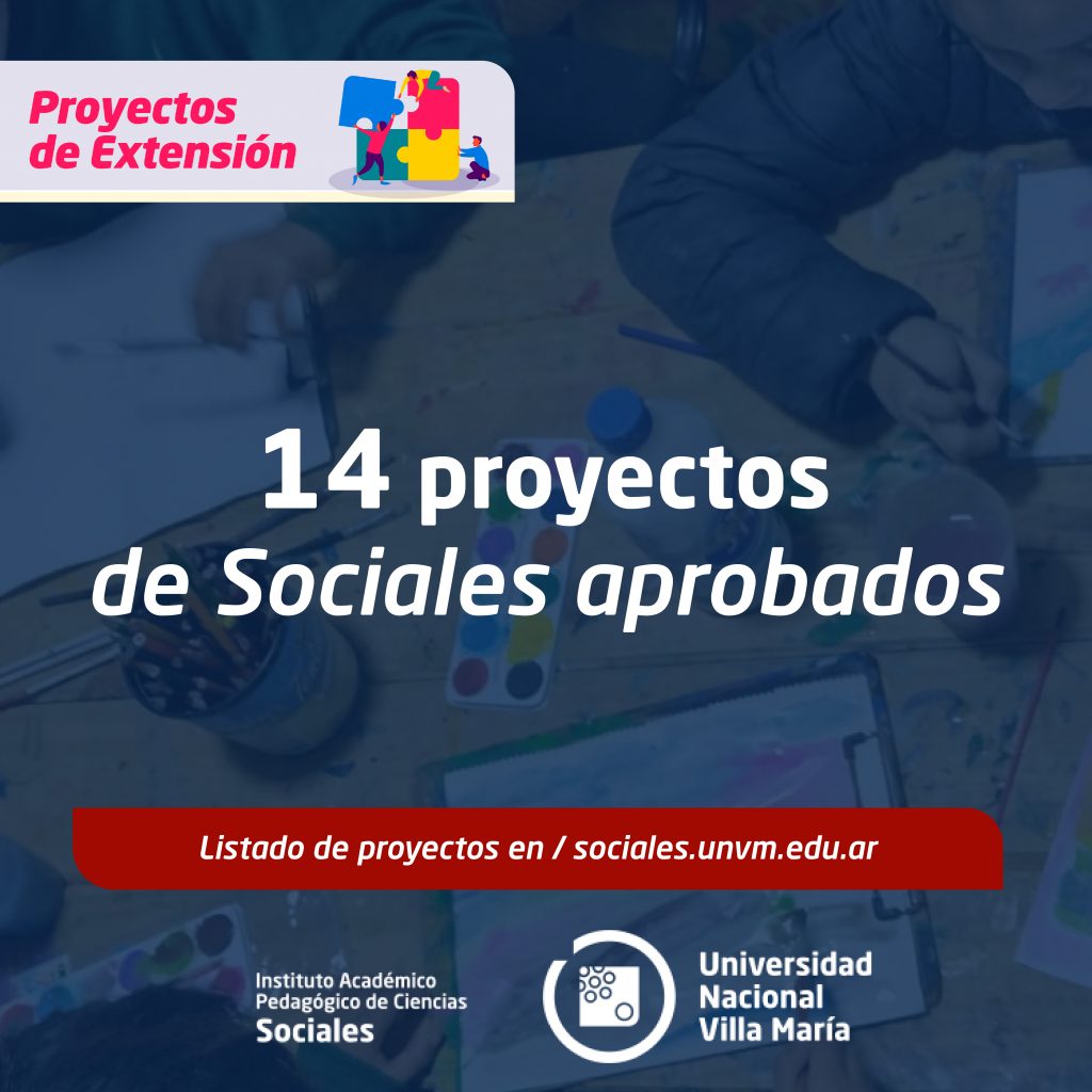El Instituto de Extensión de la Universidad Nacional de Villa María (UNVM) comunicó los proyectos aprobados de la convocatoria Proyectos de Extensión 2024 , entre los cuales 14 pertenecen al Instituto de Ciencias Sociales.