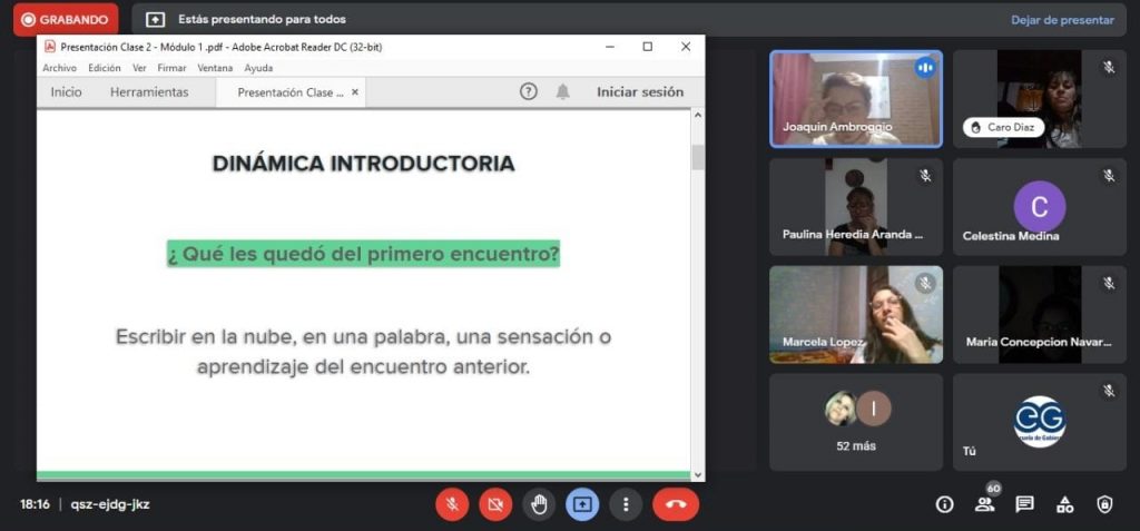 El viernes 6 se llevó a cabo la clase virtual de la Diplomatura en Promoción Socio Comunitaria de Cuidados Integrales.