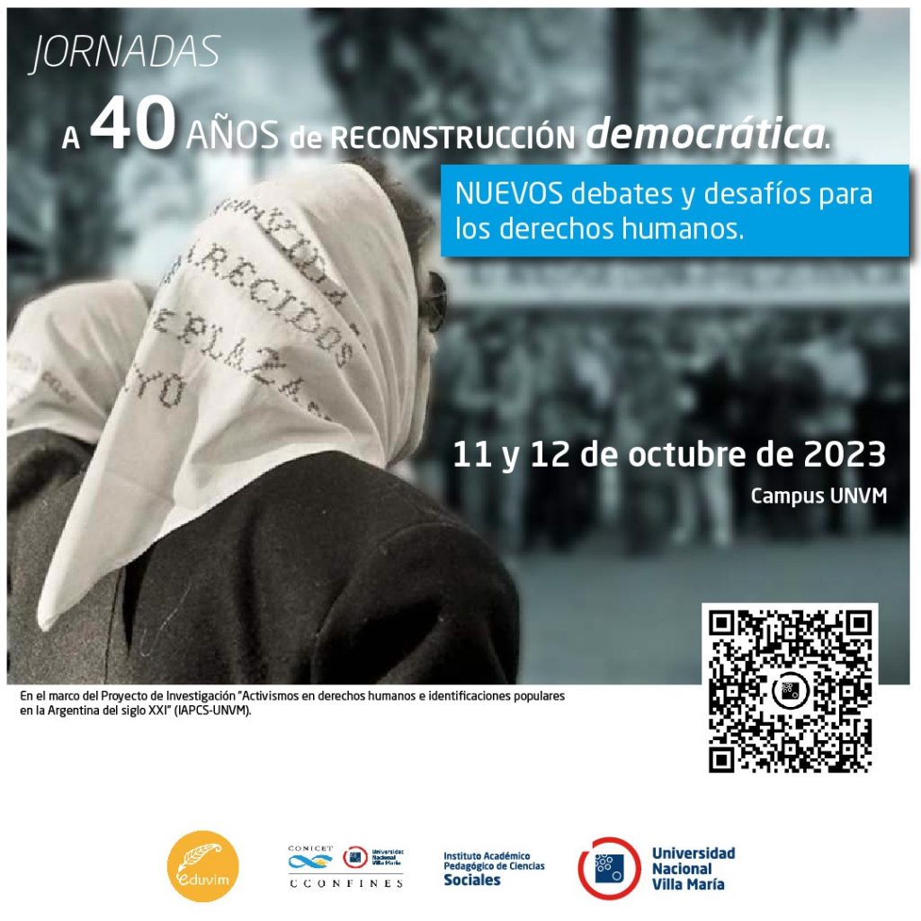 Los días 11 y 12 de octubre se llevarán a cabo las Jornadas de Reconstrucción Democrática bajo el título “Nuevos Debates y Desafíos para los Derechos Humanos”. Este evento se realizará en el campus de la UNVM y está organizado por el Instituto Académico Pedagógico de Ciencias Sociales (IAPCS-UNVM), CConFInES (UNVM-CONICET) y la Editorial Universitaria Eduvim.