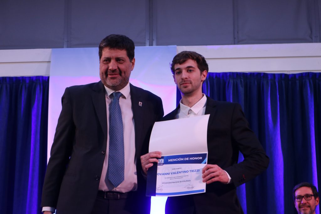 El Consejo de Profesional de Ciencias Económicas (delegación Villa María), distinguió con una medalla y un diploma al graduado de la Lic. en Economía, Giovanni Valentino Tiezzi, quien obtuvo el promedio más alto de las carreras de Ciencias Económicas con una calificación de 9.49.