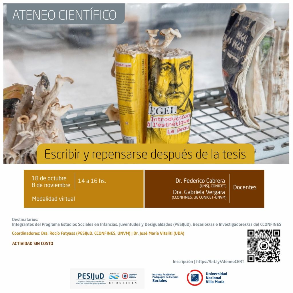 La propuesta consiste en dos encuentros virtuales a través de la plataforma Meet y con previa inscripción. El primer encuentro se realizará el 18 de octubre de 14 a 16hs y estará a cargo del Dr. Federico Cabrera, y un segundo encuentro el 8 de noviembre en el mismo horario, a cargo de la Dra. Gabriela Vergara del Valle.