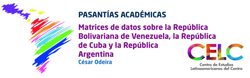 En el marco de la Pasantía Académica llevada a cabo durante el quinto año de la Lic. en Ciencia Política y realizadas en el Centro de Estudios Latinoamericanos del Centro (CELC), el estudiante César Odeira, realizó tres matrices de datos con tres países: Venezuela, Cuba y Argentina. Empleando una metodología de filtrado en búsquedas en sitios académicos, conversatorios y conferencias, también utilizando páginas de los Gobiernos.