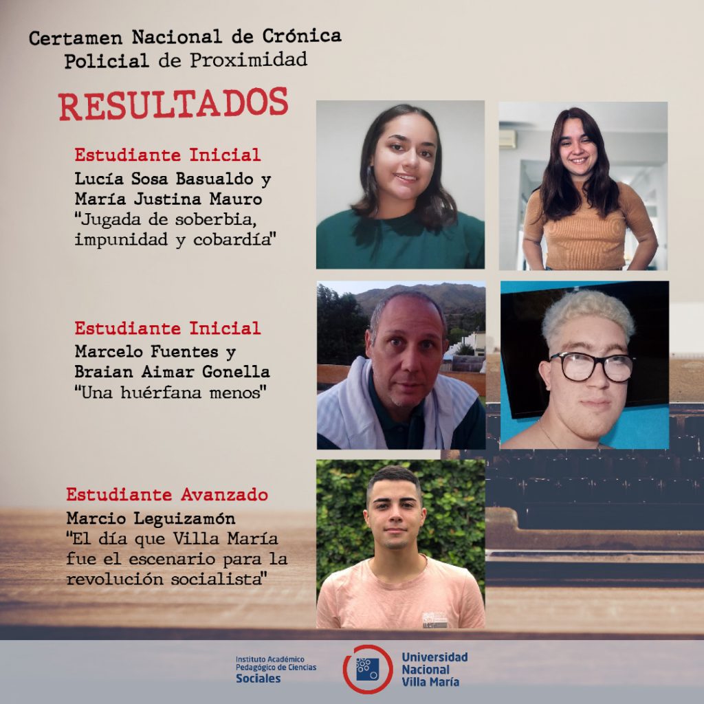 Luego de haber sido evaluados por un jurado de expertos se dieron a conocer los resultados de la Tercera Edición del concurso Crónica Policial de Proximidad; organizado por las Licenciaturas Ciencias de la Comunicación y Comunicación Social del Instituto de Sociales junto a la Secretaría de Comunicación Institucional.