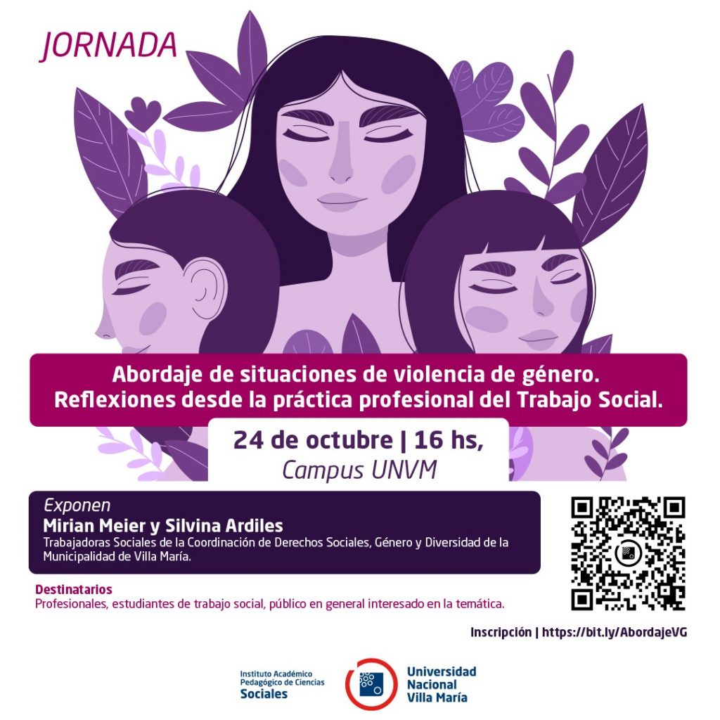 El Instituto Académico Pedagógico de Sociales a través del Espacio Curricular “Teoría-práctica del trabajo social IV: procesos de intervención profesional en escenarios familiares”, de la Lic. en Trabajo Social llevará a cabo el próximo 24 de octubre de 16 a 18 hs; en el Campus Universitario, la jornada “Abordaje de situaciones de violencia de género. Reflexiones desde la práctica profesional del Trabajo Social.