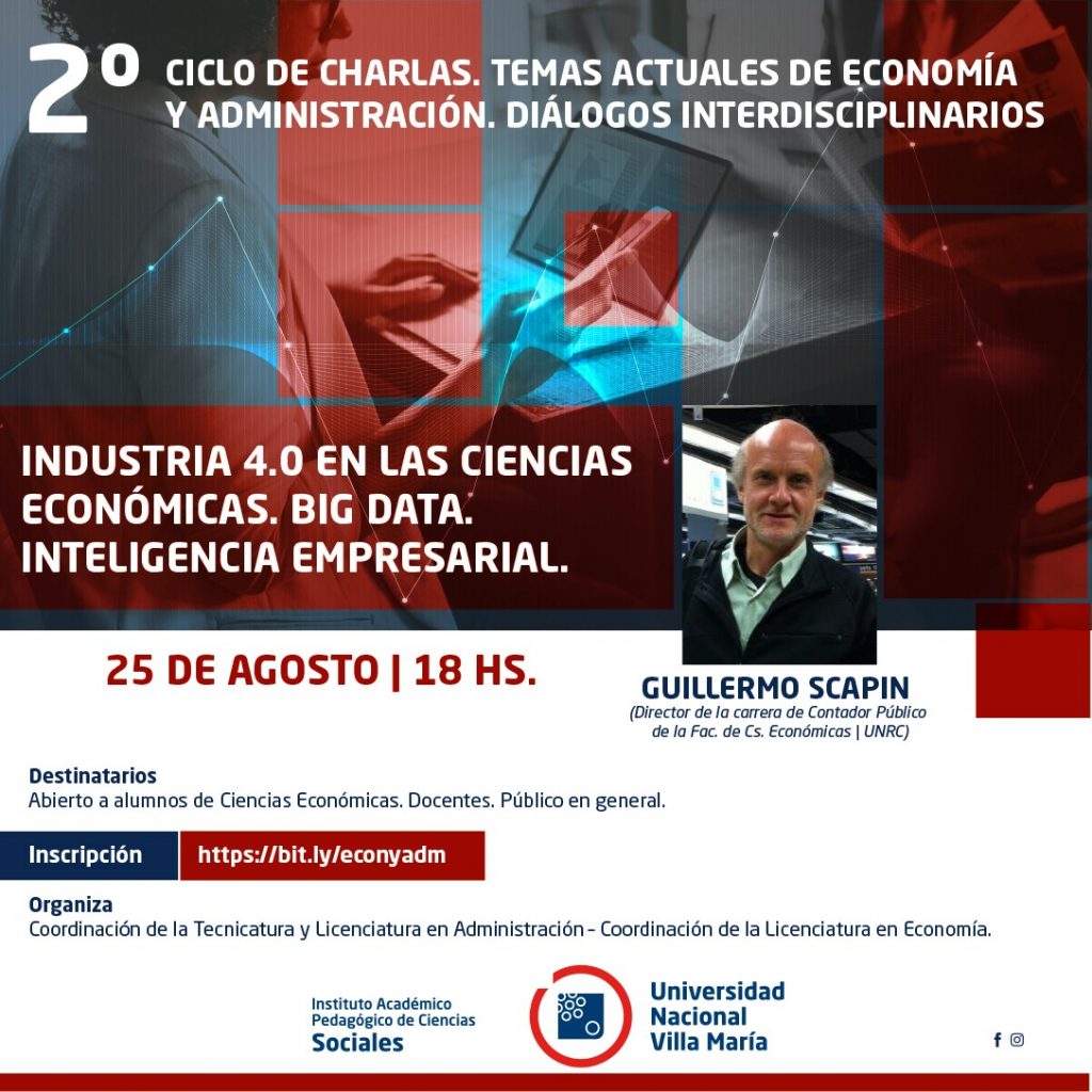 Este  primer encuentro,  contará con la participación del Director de la carrera de la Facultad de Ciencias económicas de la Universidad Nacional de Río Cuarto, Cr. Guillermo Scapin, quien disertará bajo la temátca “Industria 4.0 en las Ciencias Económicas. Big Data. Inteligencia empresarial”.