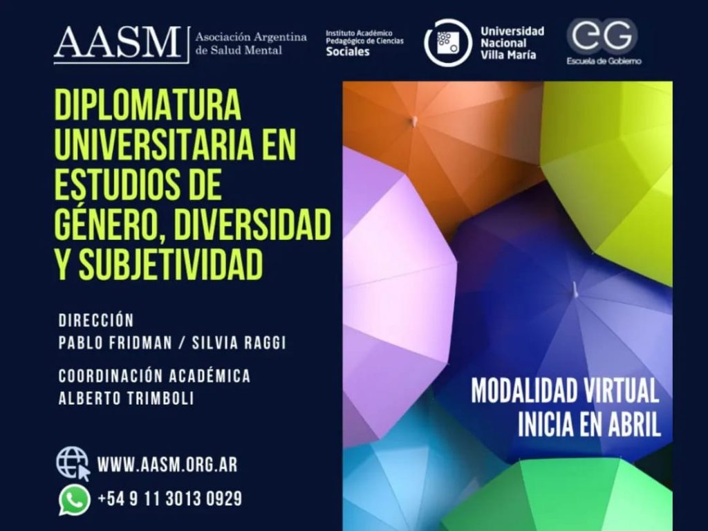 En abril se dará inicio a la diplomatura en estudios de género, diversidad y subjetividad, que se realizará en conjunto con la Escuela de Gobierno del Instituto de Ciencias Sociales, el Vicerrectorado de la Universidad Nacional de Villa María y Asociación Argentina de Salud Mental (AASM).