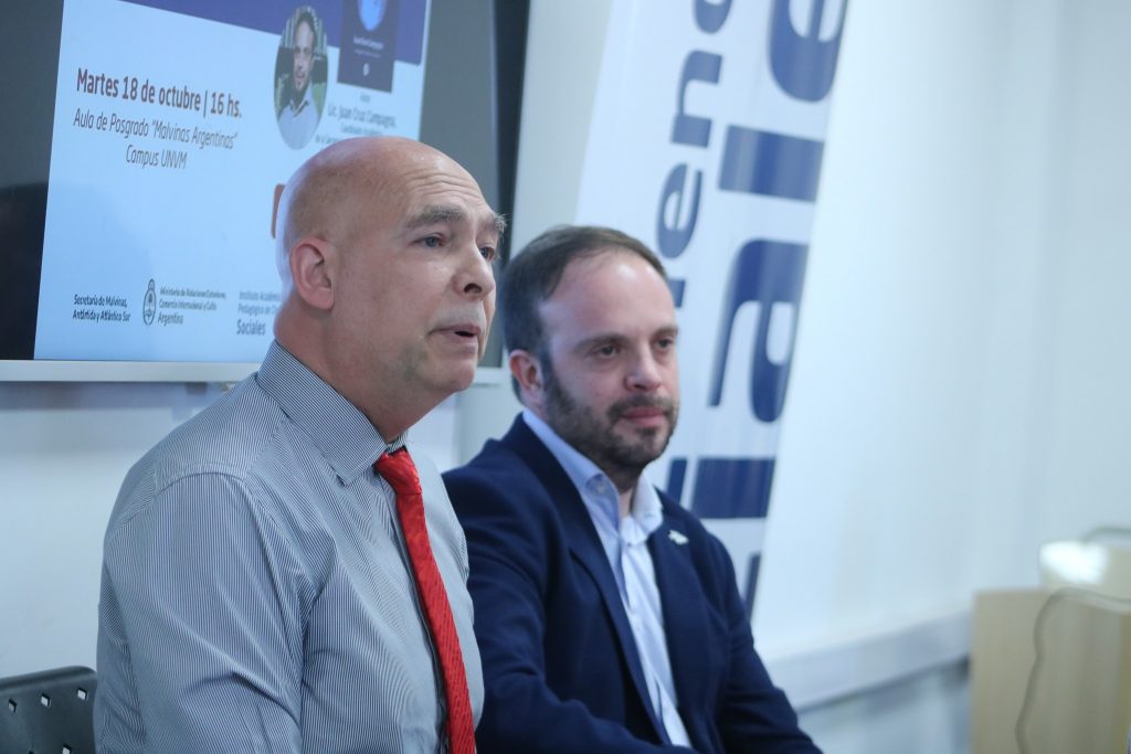 Este martes 18 se llevó a cabo en el aula de posgrado del Campus de la UNVM, el cierre de diplomado y presentación del libro “Malvinas en el escenario internacional. Importancia geopolítica y estratégica de las islas del Atlántico Sur” de Juan Cruz Campagna.
