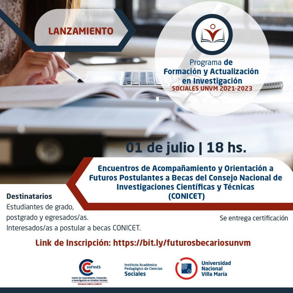 El jueves 01 de julio a las 18 horas, se llevará a cabo la primera actividad del ciclo de encuentros virtuales: “Encuentros de Acompañamiento y Orientación a Futuros Postulantes a Becas del Consejo Nacional de Investigaciones Científicas y Técnicas (CONICET)”.